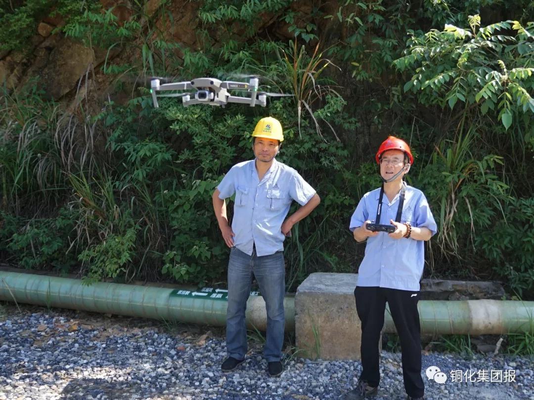 5月24日,新橋礦業(yè)公司露采工區(qū)環(huán)保員羅健(左)和無(wú)人機(jī)操作員王夫谷來(lái)到該公司四房排土場(chǎng),首次利用無(wú)人機(jī)從空中拍攝該區(qū)域環(huán)境整治情況?!√丶s記者 肖邦魁/ 攝